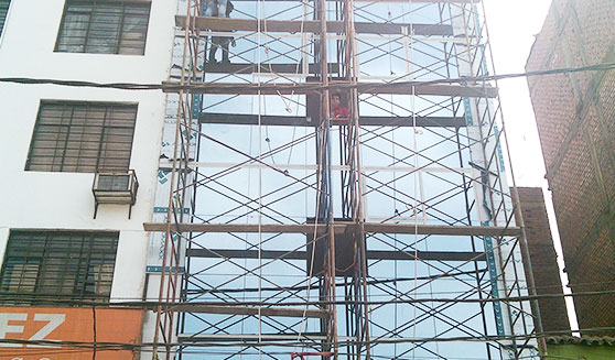 Pegado estructural: En el caso del sellador estructural de silicona, es colocado en los cuatro lados del cristal y de esta manera, los adhiere a la estructura de marco de aluminio, para que luego el panel de cristal sea instalado en obra.